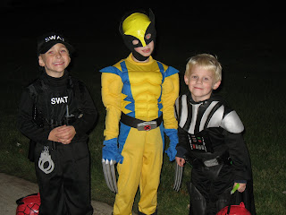 Halloween was fun -- Andrew wanted to be a SWAT officer. He saw the costume at Costco and he was totally sold! It came with a badge, handcuffs, billy club, binoculars, sun glasses, watch, flashlight, and walkie talkie. He was more excited about the costume than he was about Trick-or-Treating. After our fifth house, he said, "I've got enough candy now, can we go home?"